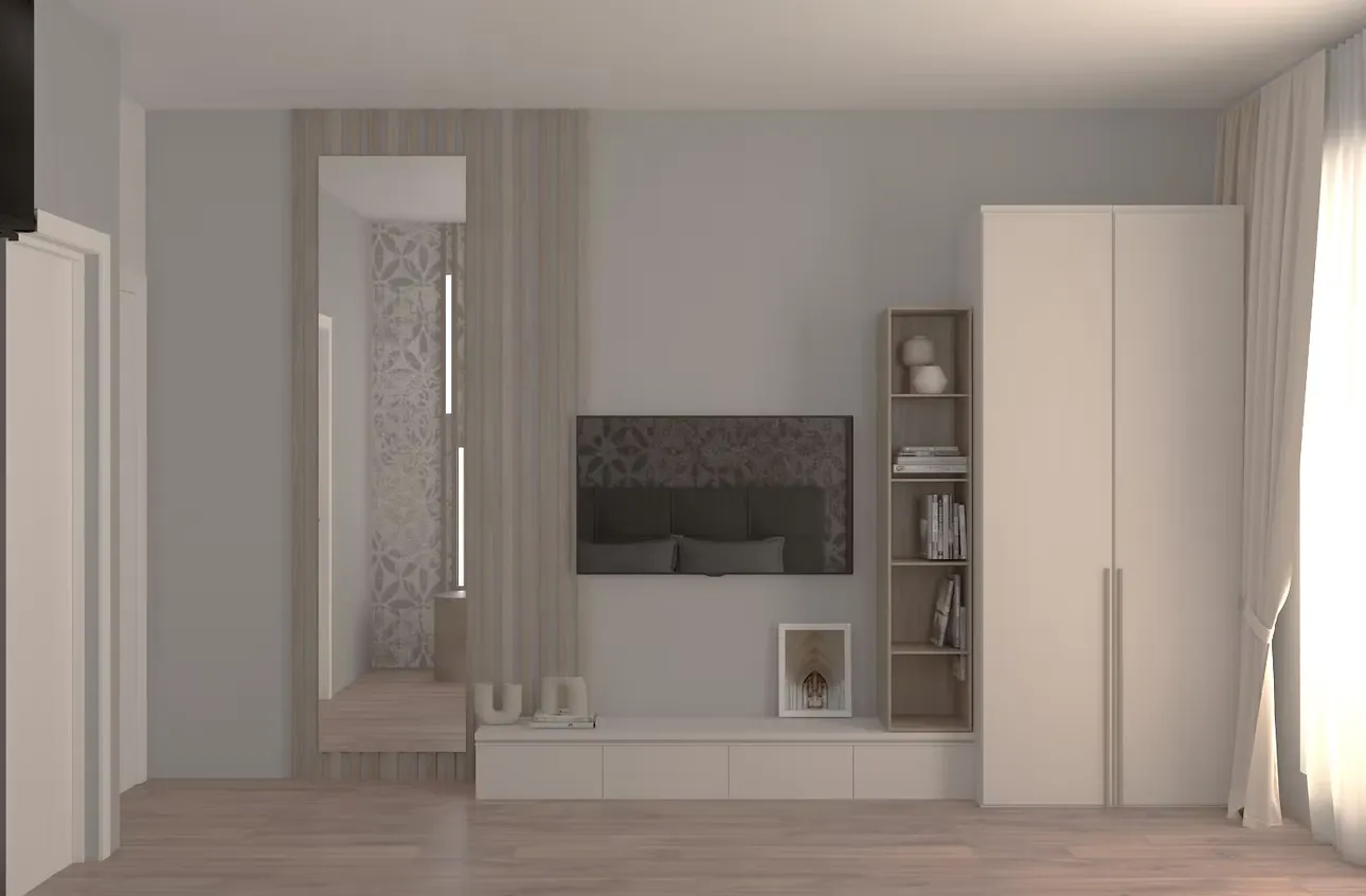 Дизайнът използва неутрални цветове, естествени материали и внимателно подбрани акценти, за да създаде усещане за хармония. Пространствата са светли и просторни, с големи прозорци, които пропускат естествена светлина.